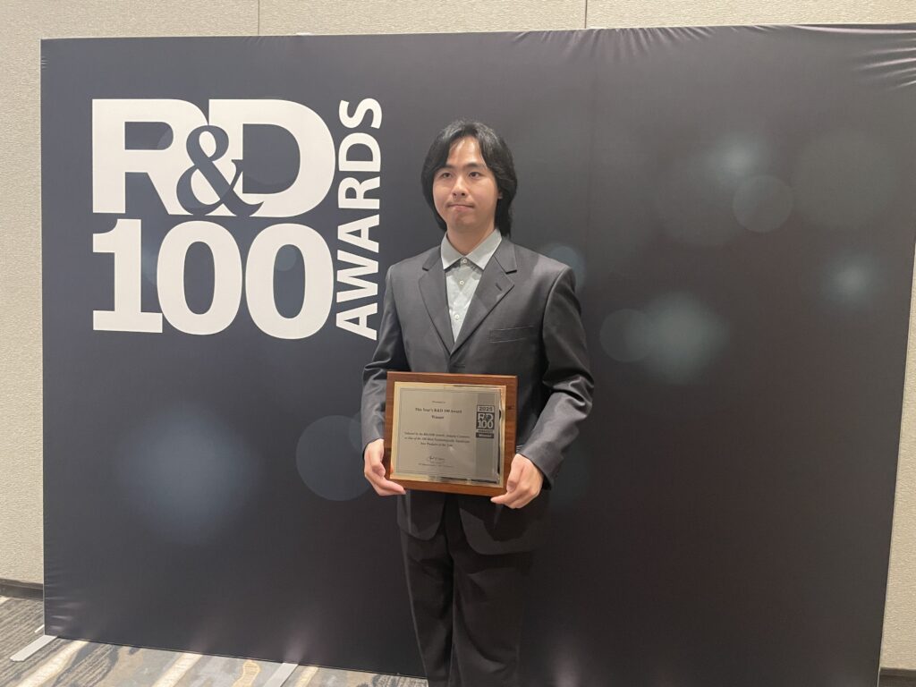 Yuru Wu accepts R&D 100 award on behalf of The University of Tennessee, Knoxville and Oak Ridge National Lab at the 2025 R&D 100 awards ceremony in Scottsdale, Arizona.