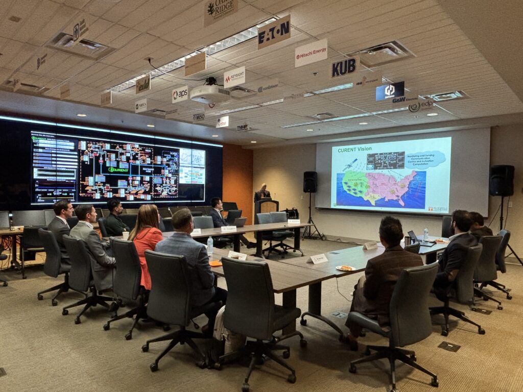 CURENT hosted three visitors from NTT DATA North America on October 10: Beth Howen – President of US Public Sector, NTT DATA, NA; Billy Johnson – Regional VP, NTT DATA NA; Jude Olesh – Account Representative, State of Tennessee, NTT DATA. NTT staff viewed the capabilities of CURENT’s reconfigurable grid emulation hardware testbed and grid simulator large scale testbed. CURENT faculty, staff, and students demonstrated capabilities in modeling data center grid impacts and how grid events impact data centers. NTT DATA is one of the largest data center manufacturers and operators in the world.